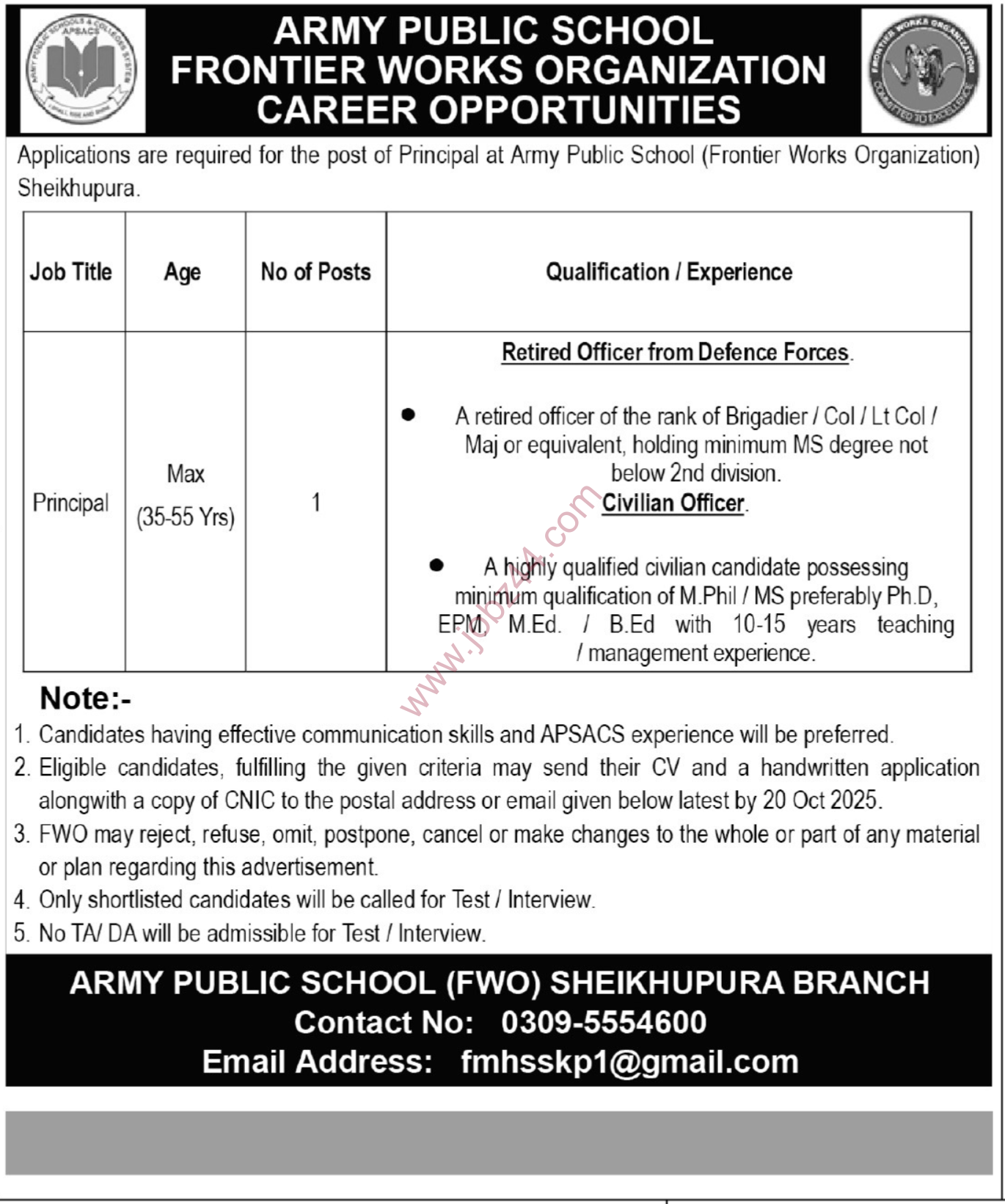 Visit the official APS Sheikhupura website or APSACS career portal