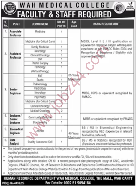 Job Opening at Wah Medical College Wah Cantt Punjab, Pakistan 2025 Full Time