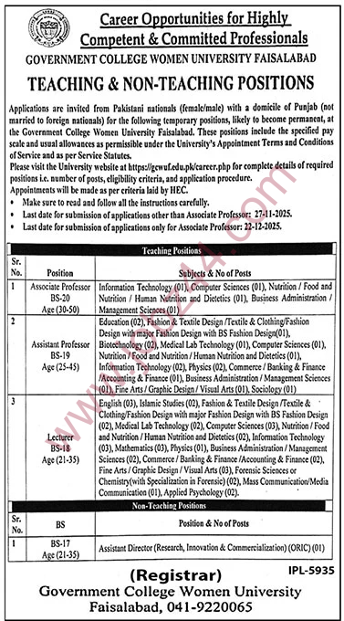 Latest job Government College Women University, Faisalabad 2025 Full Time