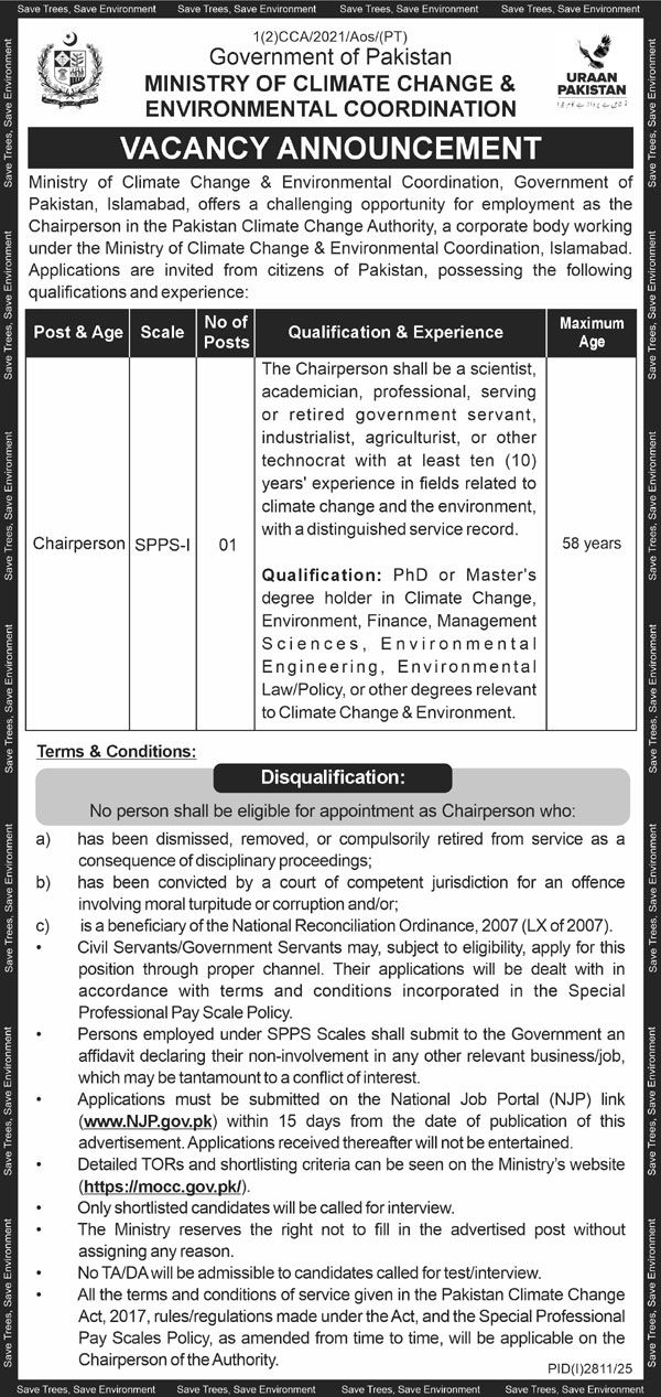 ➡️ Click here to Apply Online for Ministry of Climate Change Jobs in Gujranwala, Punjab – 2025