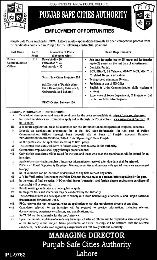 Keep reading to learn everything about the latest jobs at Punjab Safe Cities Authority PSCA Rawalpindi, Punjab in Pakistan. You will also learn how to apply online in 2025.